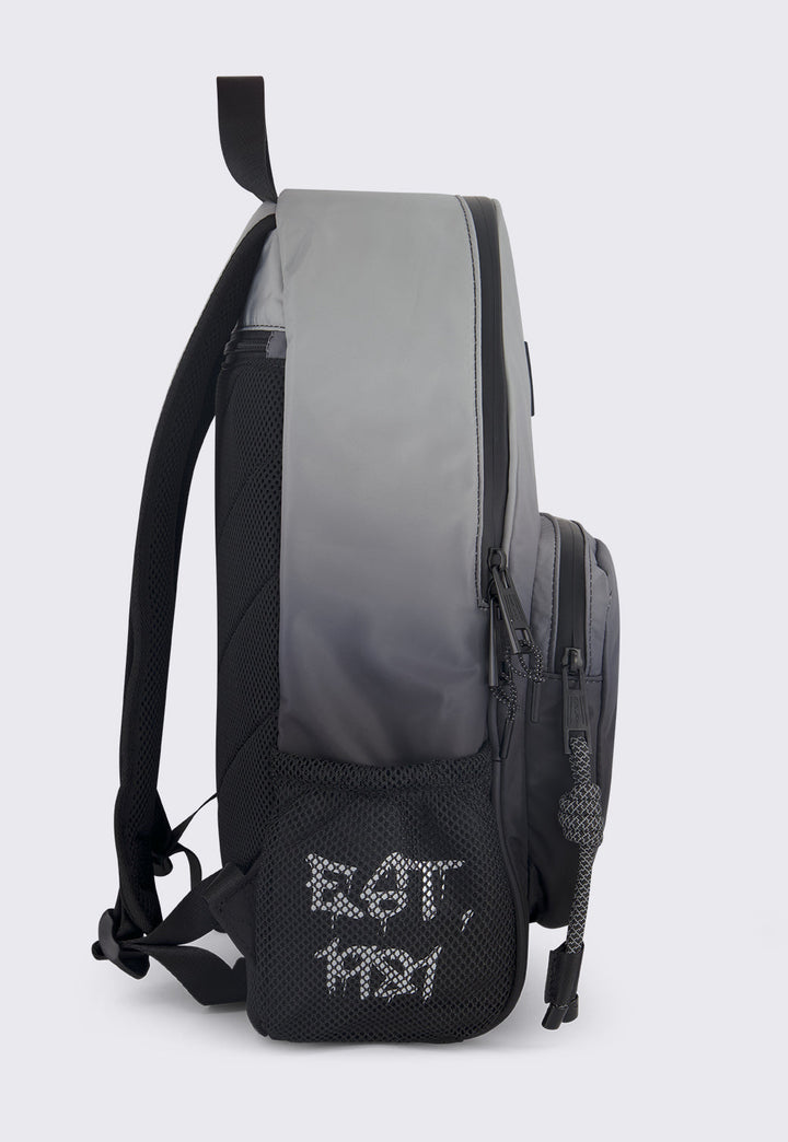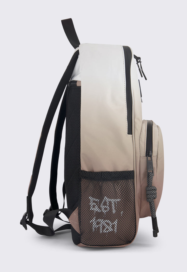 תיאור: תיק גב בית ספר מפוליאסטר בצבעי שחור וחום, במידות מרווחות המתאימות לספרים ומחברות